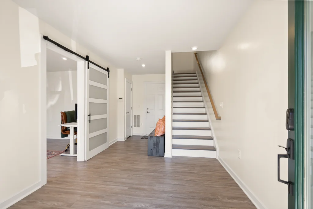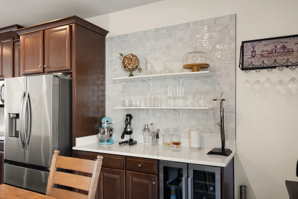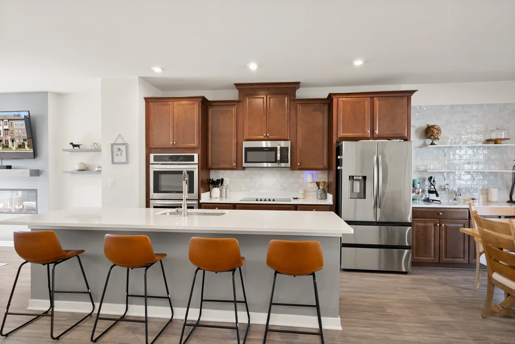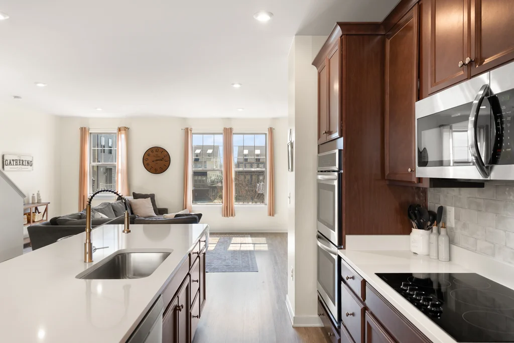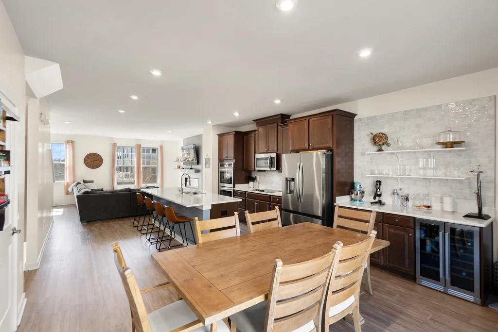 Welcome to this modern, cozy, and finely appointed 4BD, 2 Full / 1 Half BA, four-level home with a two-car garage. No detail has been overlooked—from the custom wine bar, and wine cellar, to private office spaces—freshly painted and meticulously maintained throughout. Entering from either the front door or garage, the first level welcomes you with a spacious foyer and a private, dedicated office space (or 4th bedroom), and additional storage. The main level is the heart of the home, centered around a gourmet kitchen with expansive quartz countertops, stainless steel appliances, and abundant workspace. Just off the kitchen is a custom built-in bar with wine fridge, perfect for entertaining. The dining area opens to the first deck, while the sun-filled living room features a sleek electric fireplace and an additional half bath for convenience. Upstairs on the bedroom level, the spacious primary retreat offers a beautiful ensuite bath and a generous walk-in closet. Two additional well-sized bedrooms and a second full hall bath complete this level. The fourth level loft provides incredible flexibility—ideal as a guest room, office, or family room—and opens to a spectacular rooftop deck, perfect for relaxing or entertaining under the open sky. The community offers resort-style amenities including a pool, playground, and tennis/pickleball courts, all just minutes from The Village at Leesburg (Wegmans, movie theater, etc), endless dining, shopping (Leesburg Outlets across the street!), entertainment, convenient transit options, and close to all downtown Leesburg has to offer! A perfect blend of style, space, and location—this home truly has it all. Don't delay - come see this beauty today as it's sure to go quick!
