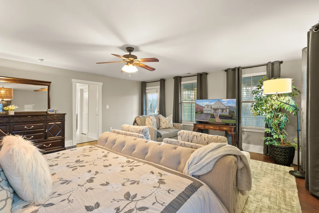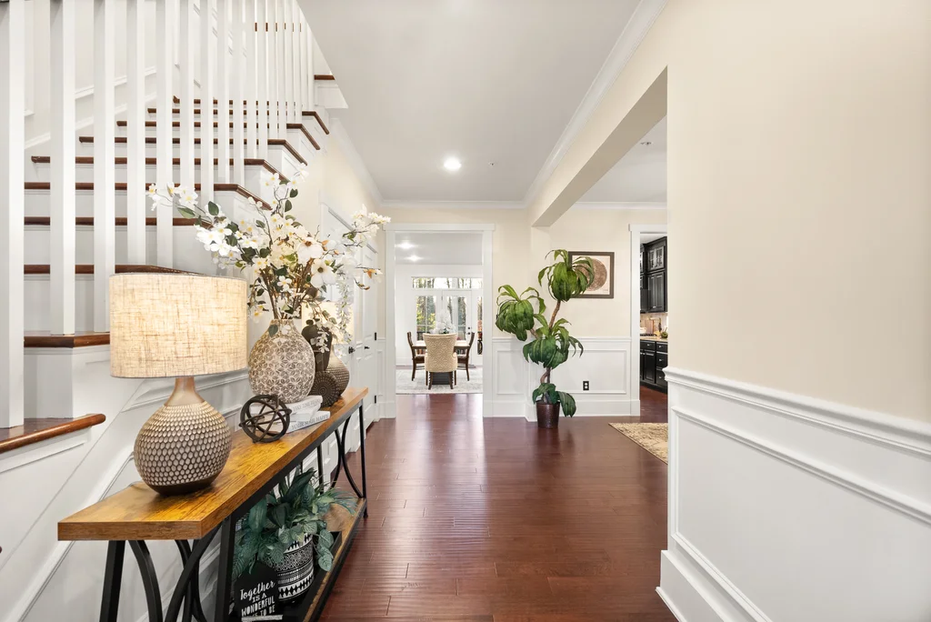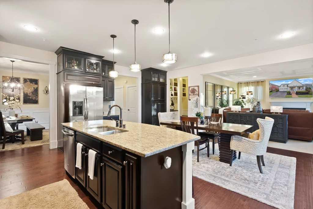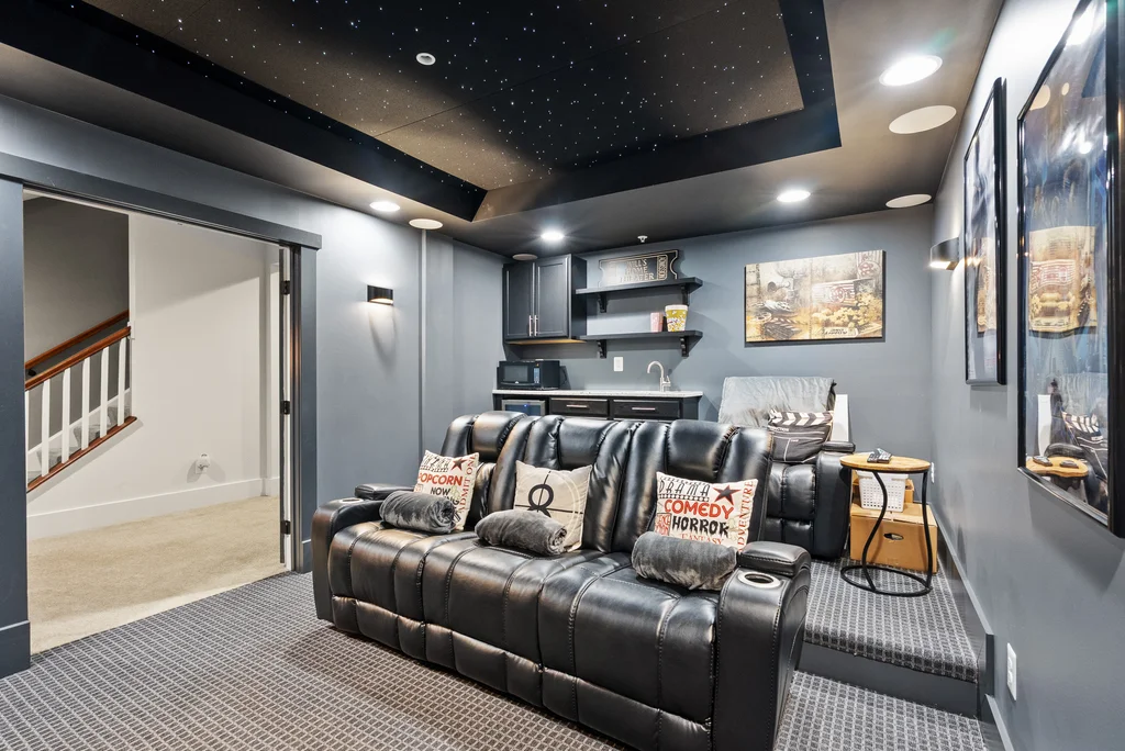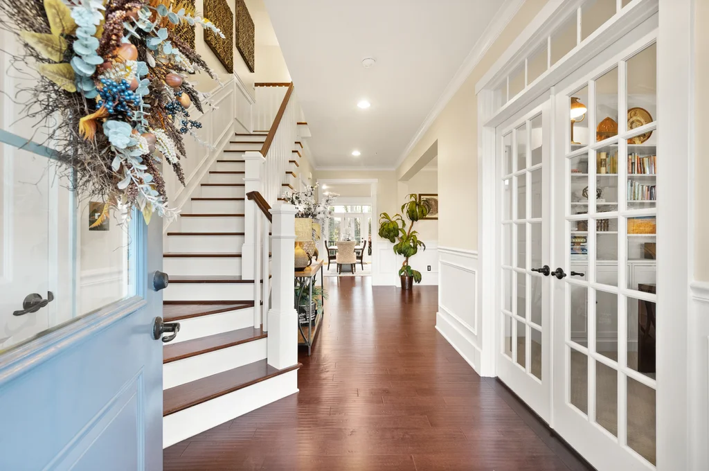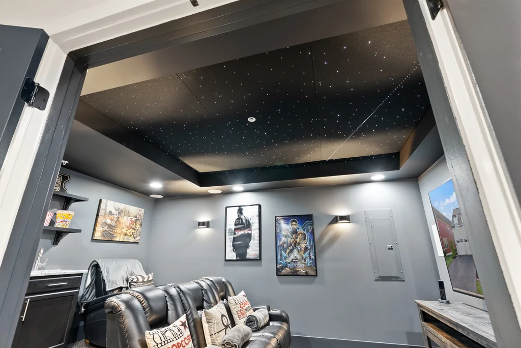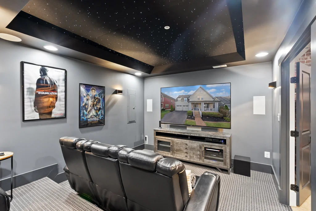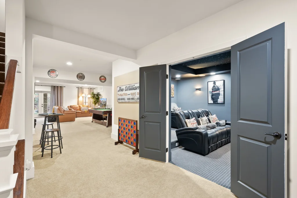 Welcome to 17032 Takeaway Lane, a refined retreat in the heart of Potomac Shores. This residence offers more than 4700 square feet of elegant living with natural light, thoughtful design, and timeless finishes throughout. The main level features a stunning office with French doors that open to the front porch, a sophisticated dining room, and a gourmet kitchen that flows effortlessly into the living room and screened in porch overlooking serene wooded views. Upstairs, every bedroom is generously sized with walk in closets, while the primary suite offers a private deck perfect for quiet mornings and evening unwinding. The custom movie theater elevates the home even further with a star lit ceiling, raised seating, and immersive surround sound that creates a true luxury cinema experience. The finished basement expands the living space with a spacious recreation area and seamless walk out access to the outdoors. Potomac Shores completes the lifestyle with resort level amenities including two pools, a state of the art fitness center, golf course, miles of trails, and convenient access to the VRE. This is luxury living at its finest, blending comfort, elegance, and unforgettable features in one extraordinary home.